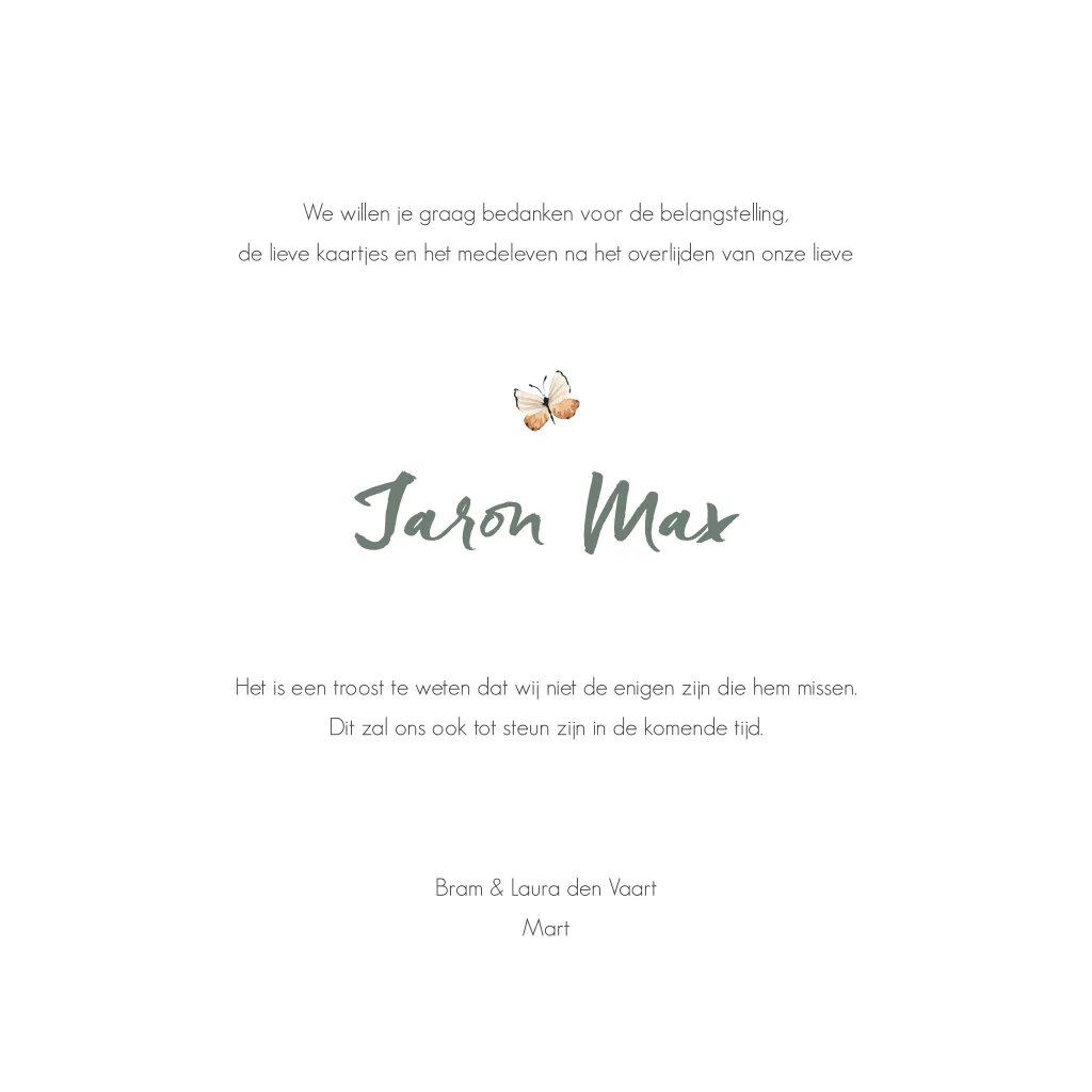 Met een dankbetuiging kun je familieleden en vrienden bedanken voor alle steun na het overlijden van jullie dierbare.