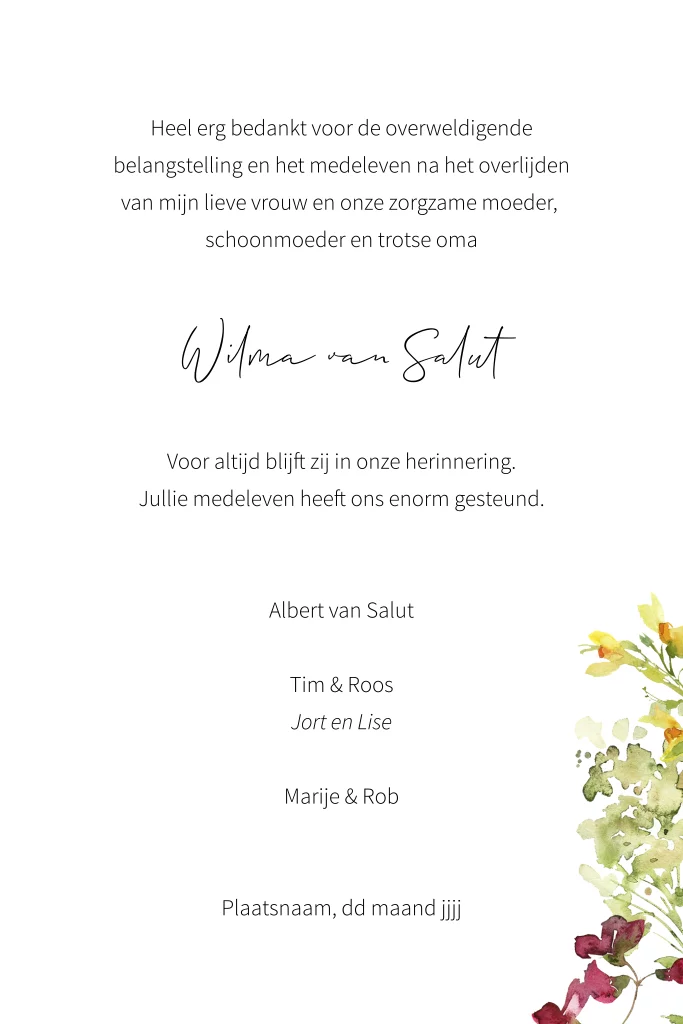 Met een dankbetuiging kun je familieleden en vrienden bedanken voor alle steun na het overlijden van jullie dierbare.