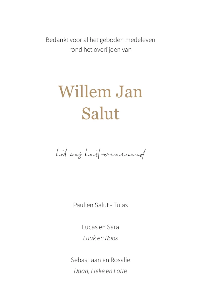 Rustige bedankkaart overlijden met palmgras