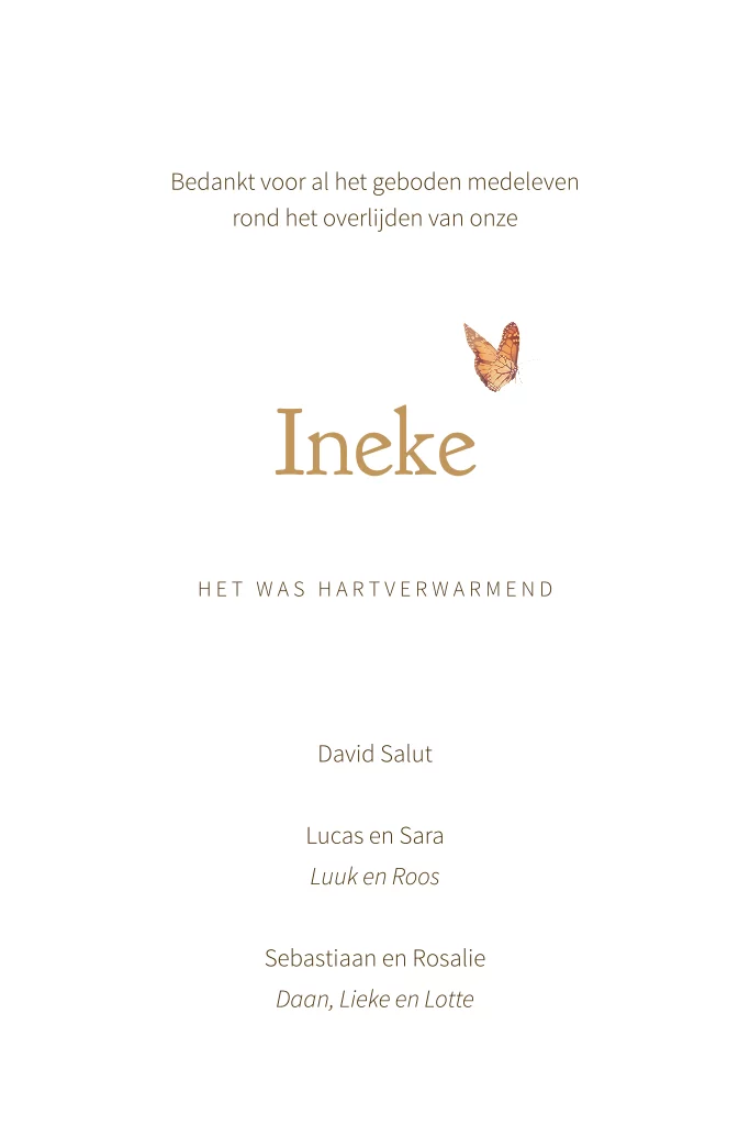 Met een dankbetuiging kun je familieleden en vrienden bedanken voor alle steun na het overlijden van jullie dierbare.