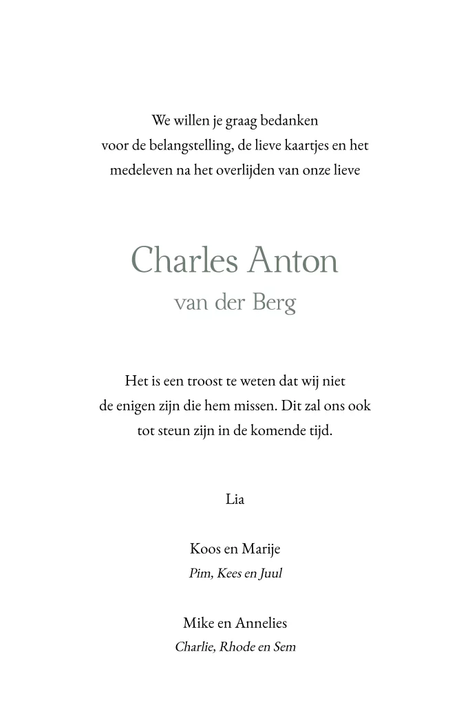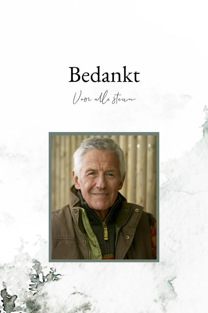 Mooie bedankt kaart voor het overlijden van een man of vrouw. De kaart heeft aquarel groene bergen en de mogelijkheid om voorop een eigen foto te uploaden.