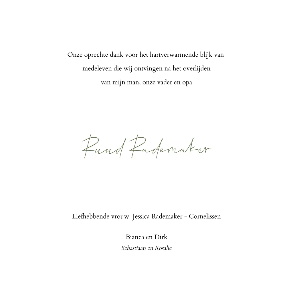 Bedankt kaart overlijden eucalyptus takje en de mogelijkheid om een foto toe te voegen aan de binnenzijde.