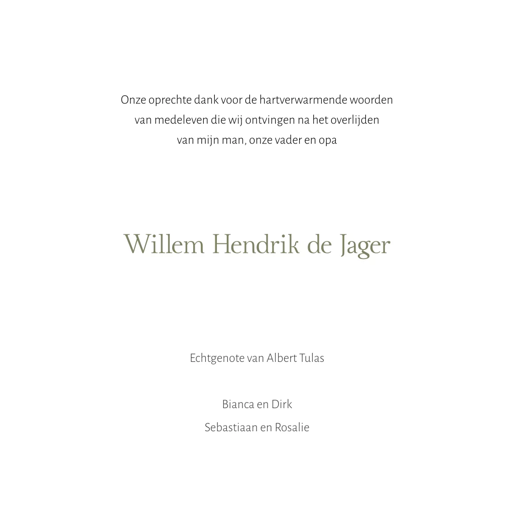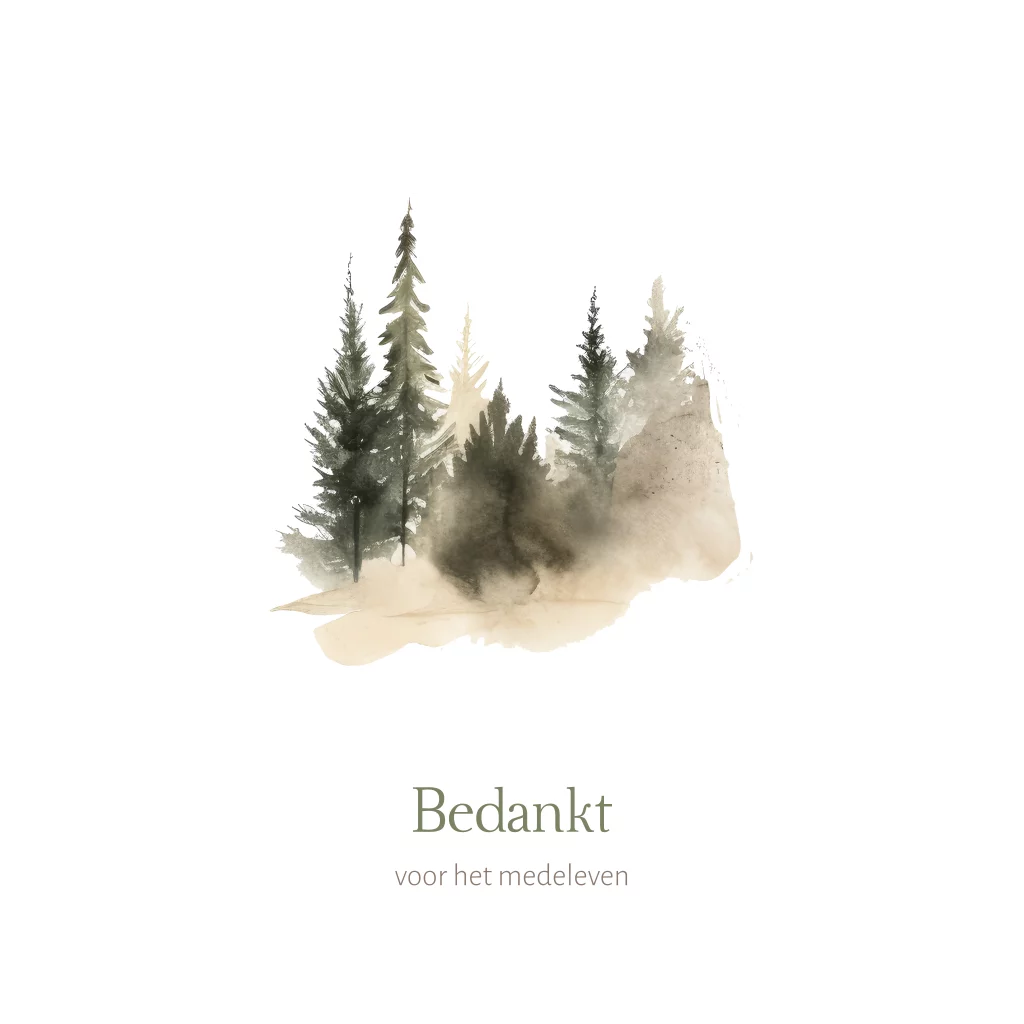 Bedankt kaart overlijden met illustratie van bomen en de mogelijkheid om binnen een foto toe te voegen.