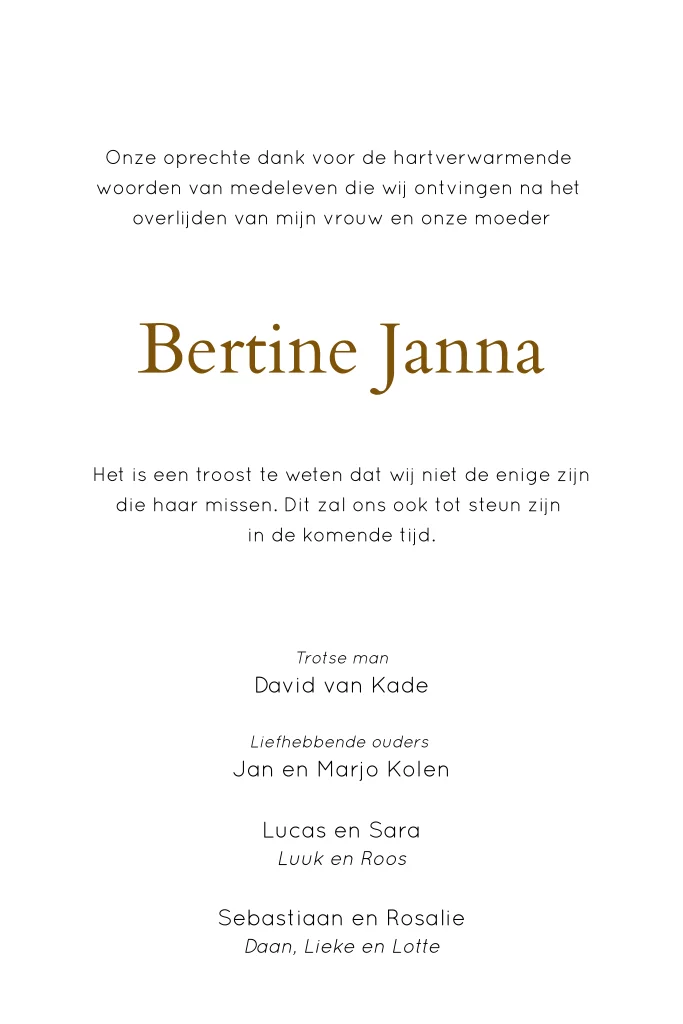 Upload een eigen foto. Pas de teksten, kleuren en lettertypes aan naar je eigen wens. Hulp nodig bij het opmaken van deze kaart? We helpen je er graag bij.