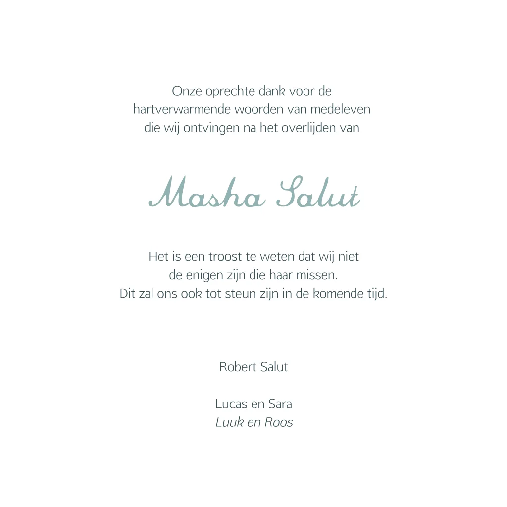 Met een bedankkaart kun je familieleden en vrienden bedanken voor alle steun na het overlijden van jullie dierbare.