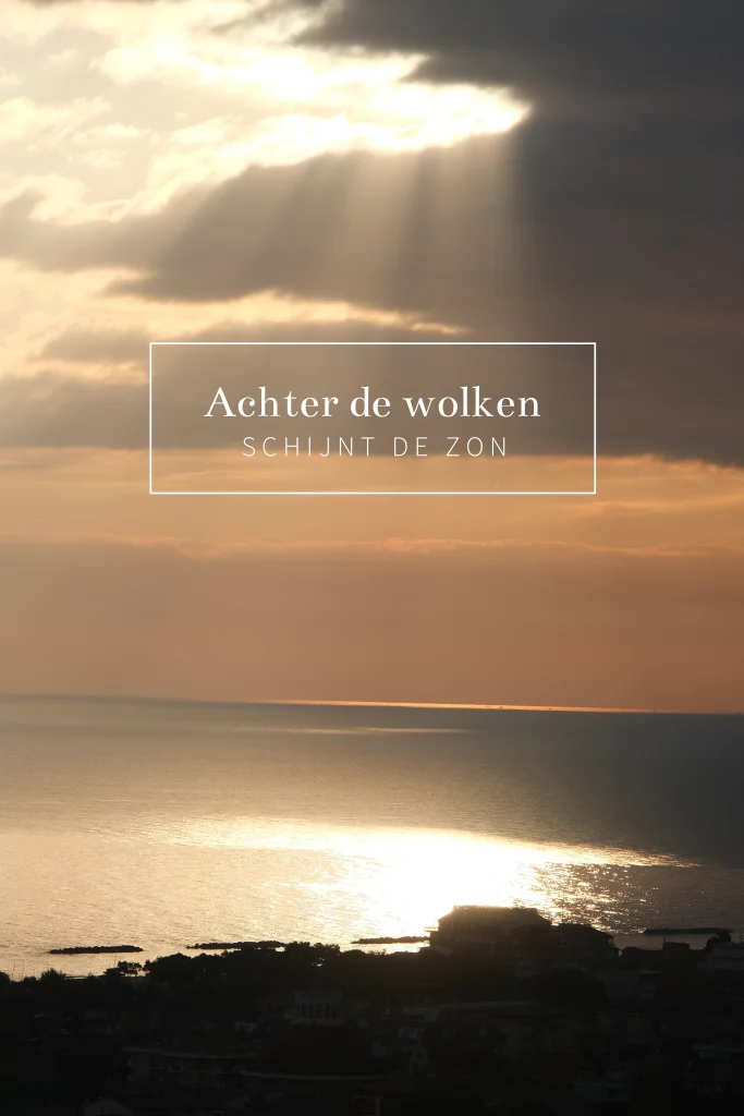 Rouw bedankkaart met een sfeerfoto van de zee met een doorbrekende zon. Op de binnenzijde is ruimte voor een eigen foto.