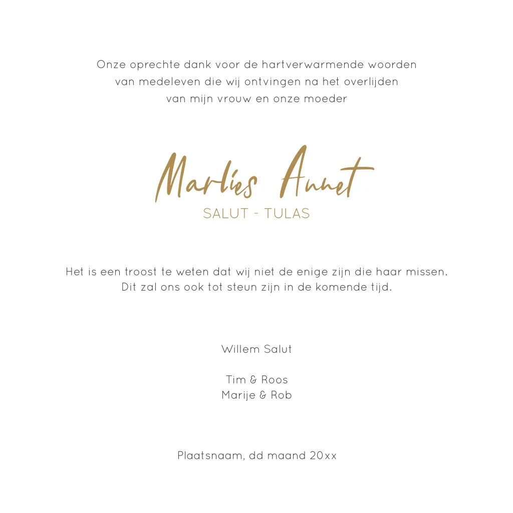 Met een dankbetuiging kun je familieleden en vrienden bedanken voor alle steun na het overlijden van jullie dierbare.