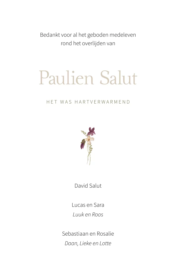 Met een dankbetuiging kun je familieleden en vrienden bedanken voor alle steun na het overlijden van jullie dierbare.