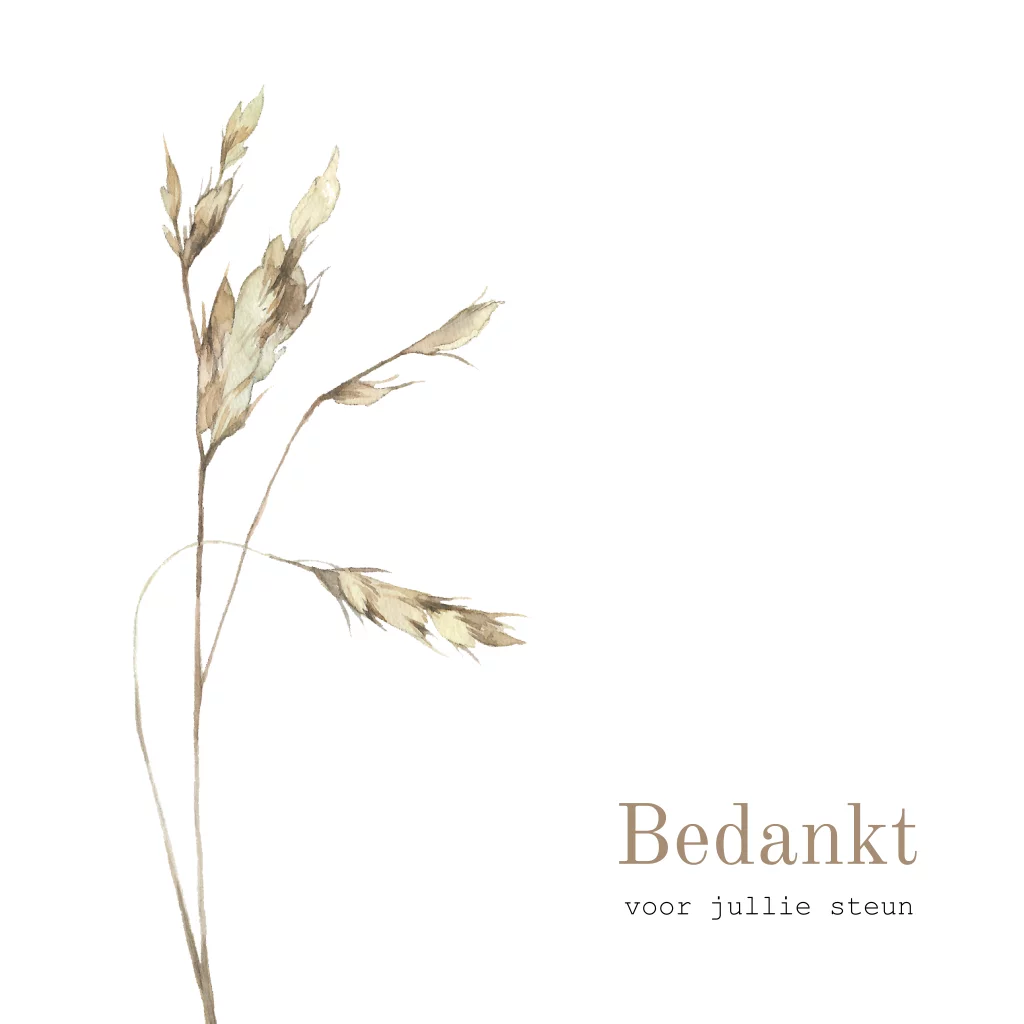 Rustige rouw bedankkaart met grasaren (of graspluim) in zacht beige tinten.