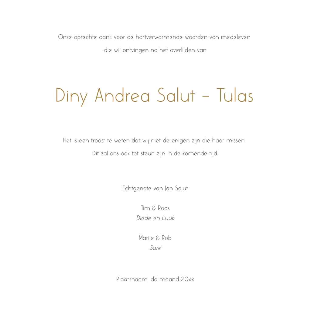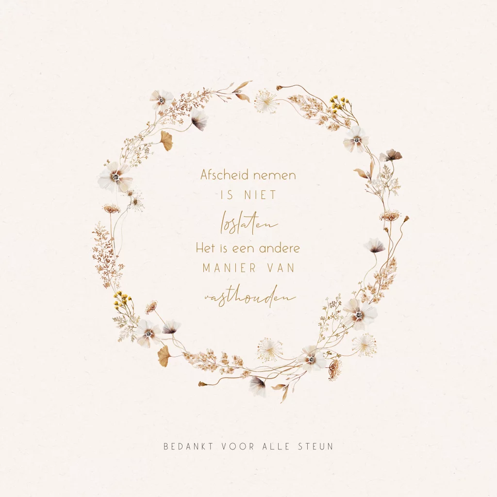 Met een dankbetuiging kun je familieleden en vrienden bedanken voor alle steun na het overlijden van jullie dierbare.