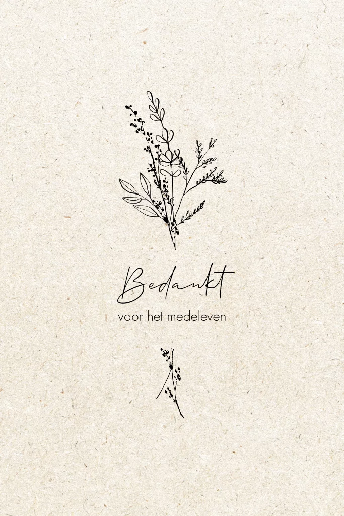 Bedankkaart na het overlijden. De kaart heeft een eco look achtergrond en de mogelijkheid om aan de binnenzijde een eigen foto te uploaden.