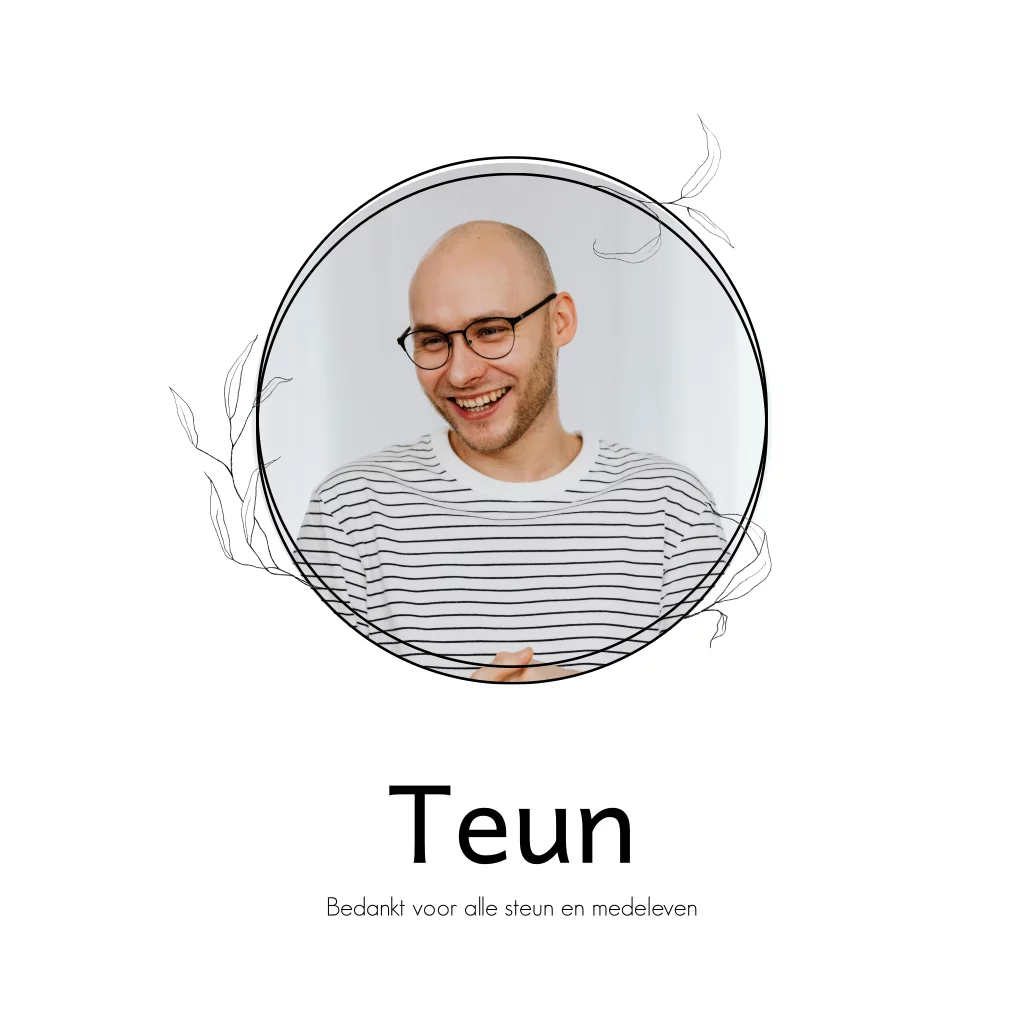 Bedankkaart voor het overlijden. Op de voorzijde is er ruimte voor een foto.