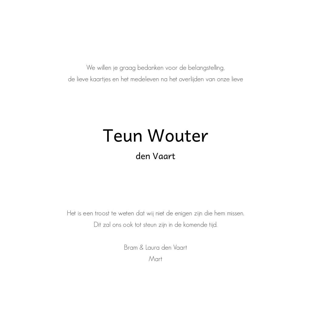 Met een dankbetuiging kun je familieleden en vrienden bedanken voor alle steun na het overlijden van jullie dierbare.
