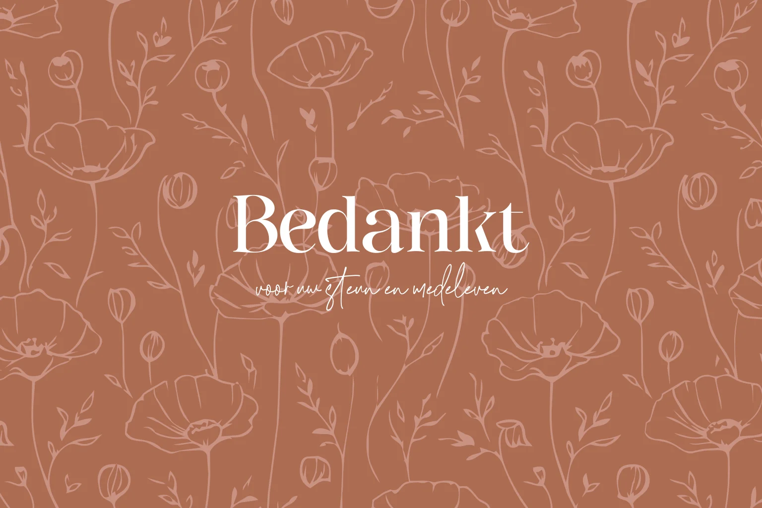 Bedankkaart met patroon van klaprozen. Passend bij de kleurrijke rouwkaart van klaprozen. Bewerk de bedankkaart en plaats eigen tekst, zodat het bij jouw dierbare past.