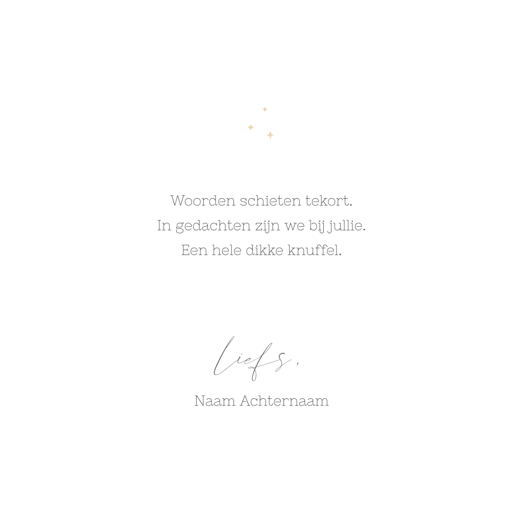 Condoleance kaart met een aquarel maan en kleine goudkleurige sterretjes voor een kind of baby.