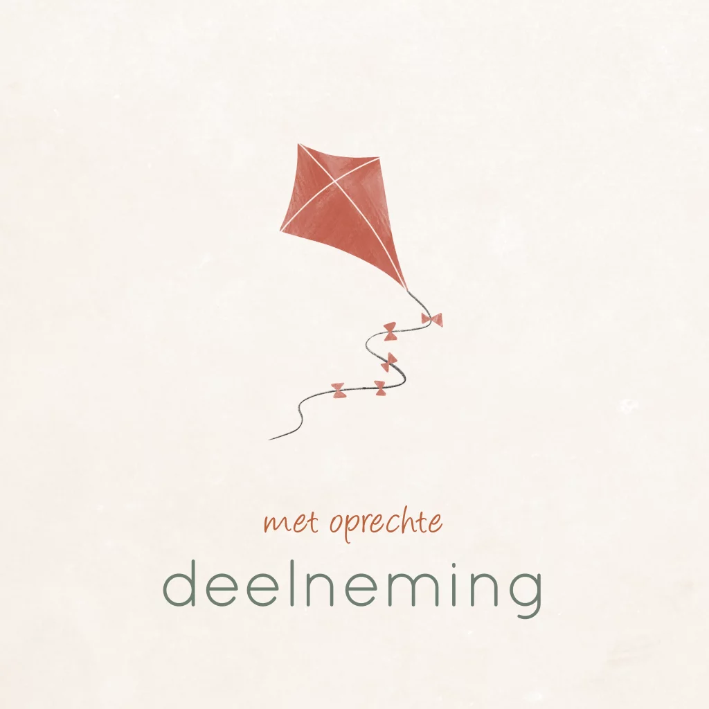Met oprechte deelneming kaart voor baby of kind met rode vlieger.