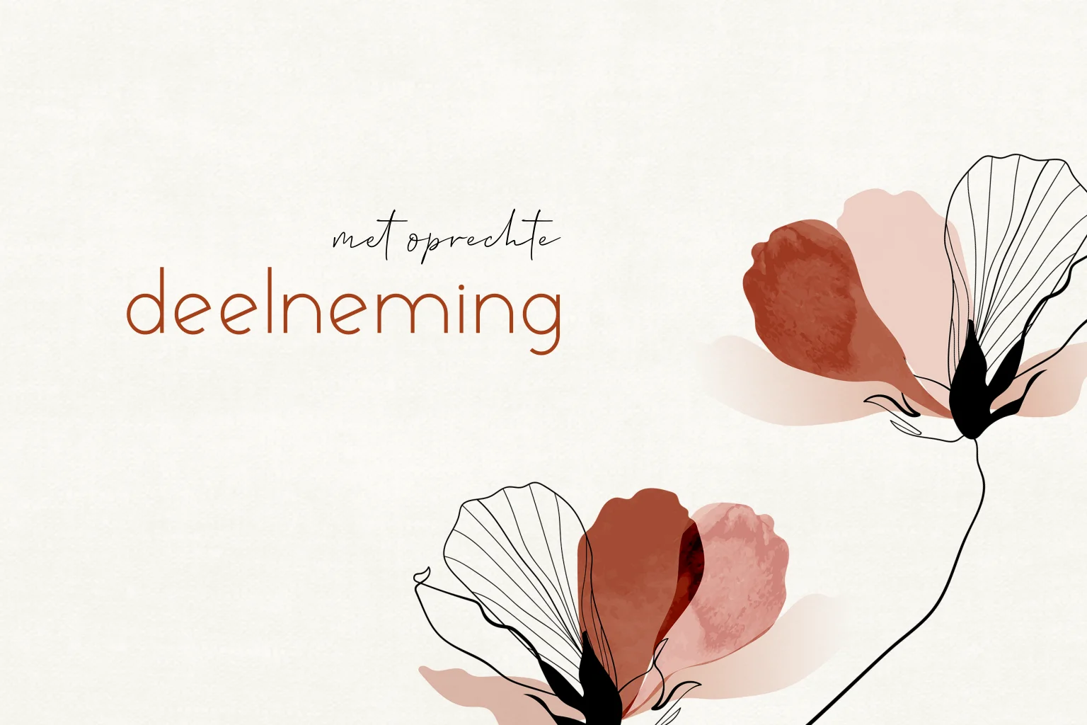 Stijlvolle wenskaart om iemand te condoleren en veel sterkte te wensen. Op deze condoleance kaart staan abstracte aquarel klaprozen met de tekst 'met oprechte deelneming'.