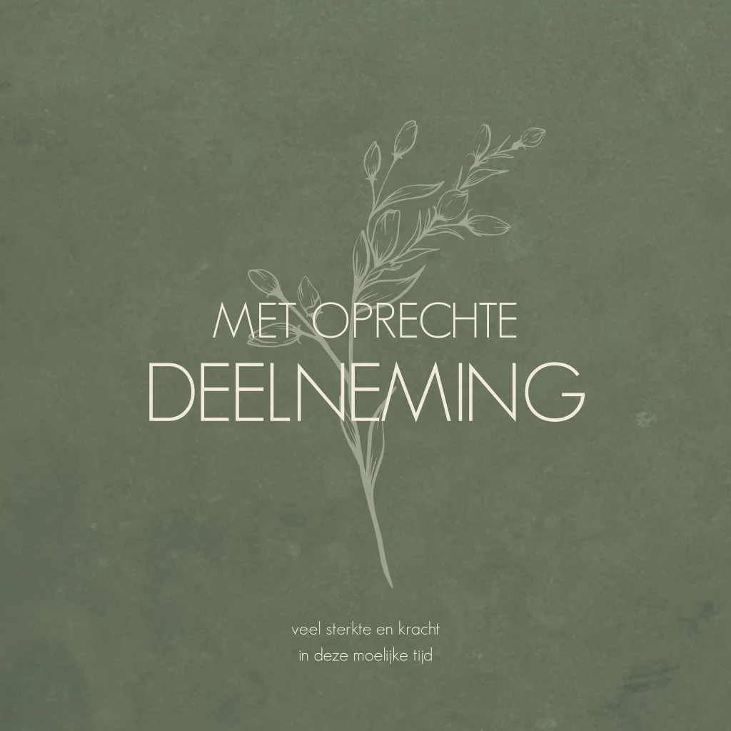 Condoleance kaart "Met oprechte deelneming", met outline bloemtakje.