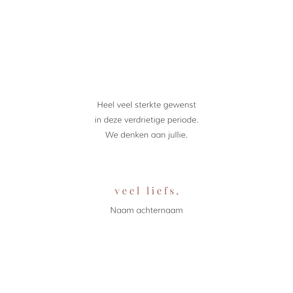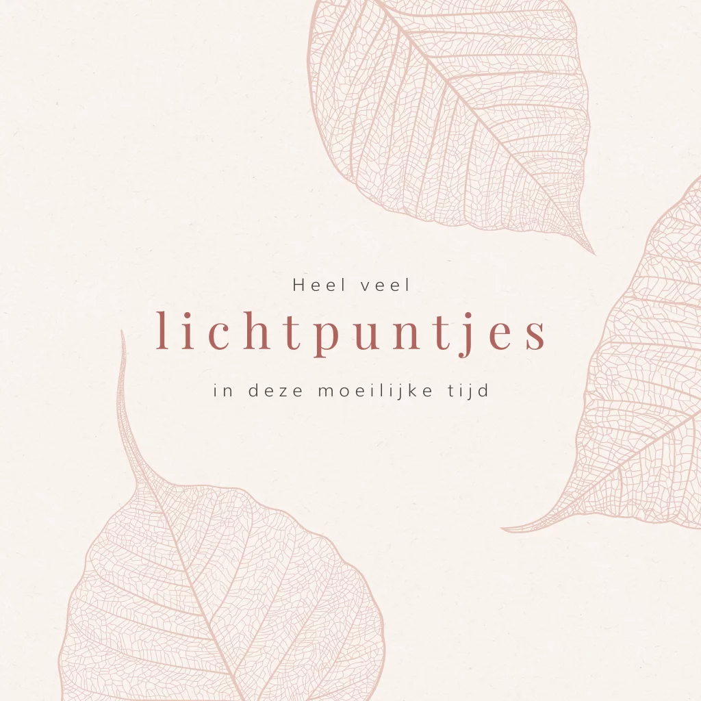 Condoleance kaart in een lichte, oud roze kleur met op de achtergrond gedroogde bladeren.