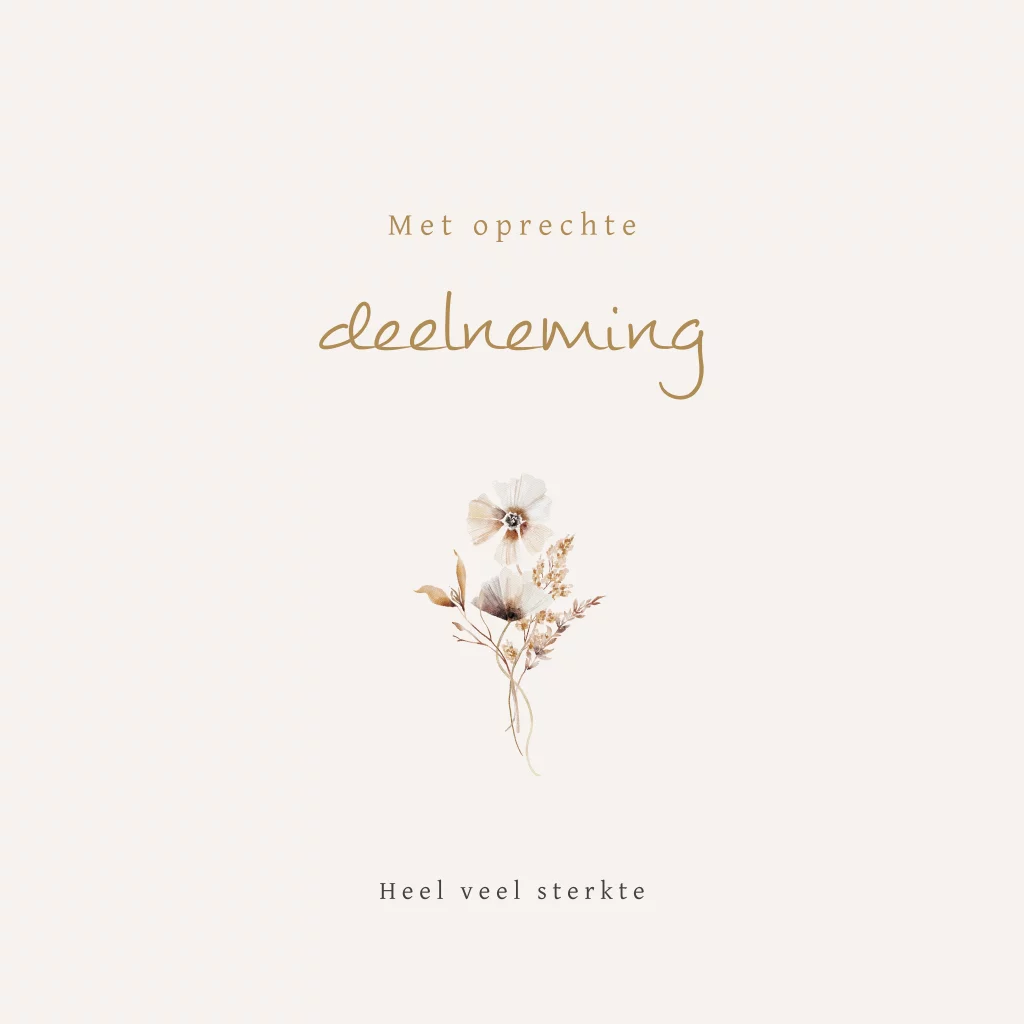 Rustige met oprechte deelneming kaart met natuurlijke kleuren en veldbloemen en takjes.