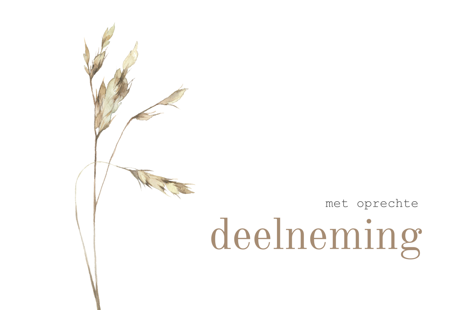 Rustige condoleance kaart met grasaren in zacht beige tinten en de tekst "met oprechte deelneming".