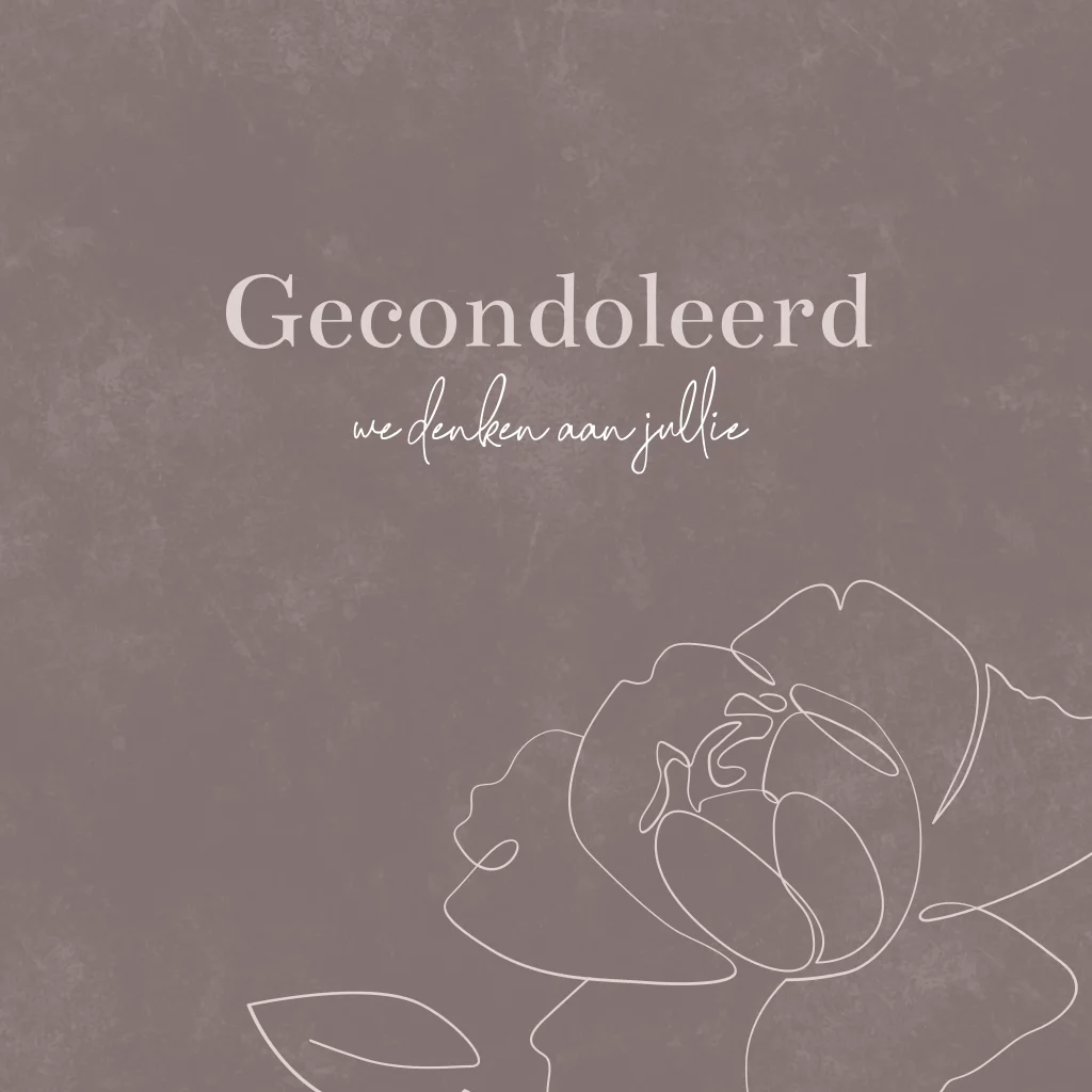 Stijlvolle condoleancekaart met een oneline illustratie van een roos op een velvet achtergrond.