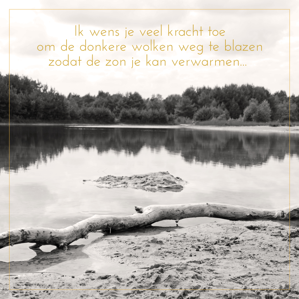 Kaart met zwart wit foto met daarop een wens aan uw vriend of familie waarvan een dierbare is overleden. Aan de binnenzijde van de kaart is ruimte om een gedicht te plaatsen.