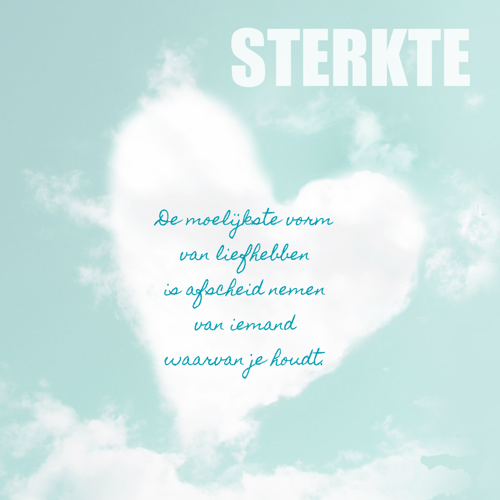 Op deze kaart vormt een wolk een hart. Het gedicht op deze condoleancekaart kan vervangen worden. Onder 'condoleance gedichten' vind u voorbeeldgedichten die u kunt gebruiken.