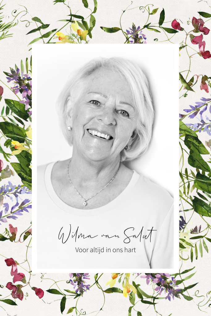 Op dit kaartje, ter nagedachtenis aan de overledene, plaats je een eigen foto en is ruimte voor een mooi gedicht en een persoonlijke tekst om de dierbare te herinneren.