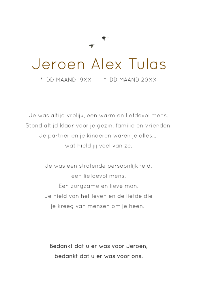Op dit kaartje, ter nagedachtenis aan de overledene, is ruimte voor een foto, een mooi gedicht en een persoonlijke tekst om de dierbare te herinneren.