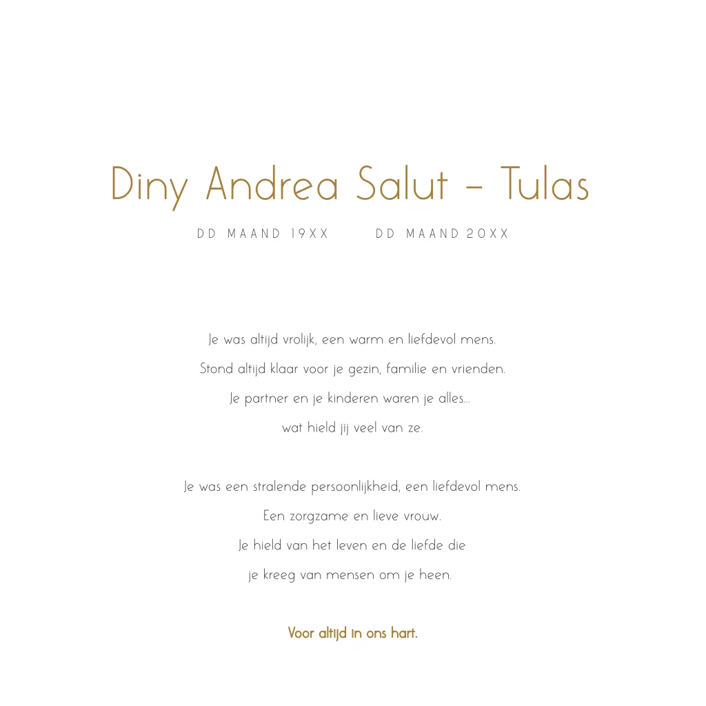 Op dit kaartje, ter nagedachtenis aan de overledene, is ruimte voor een foto, een mooi gedicht en een persoonlijke tekst om de dierbare te herinneren.