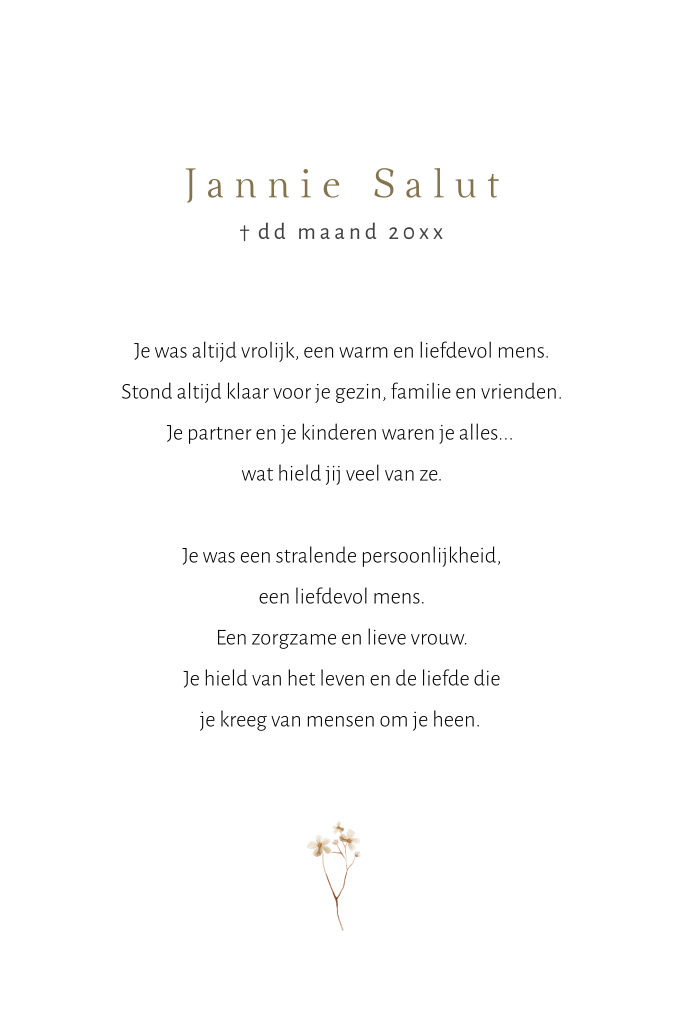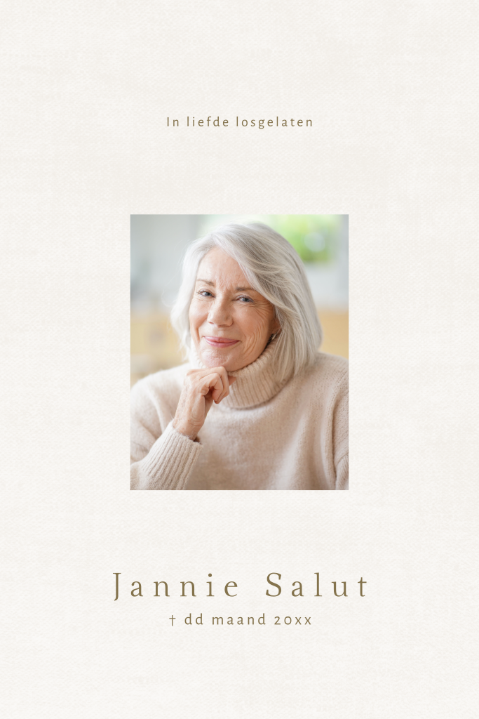 Op dit kaartje, ter nagedachtenis aan de overledene, is ruimte voor een foto, een mooi gedicht en een persoonlijke tekst om de dierbare te herinneren.