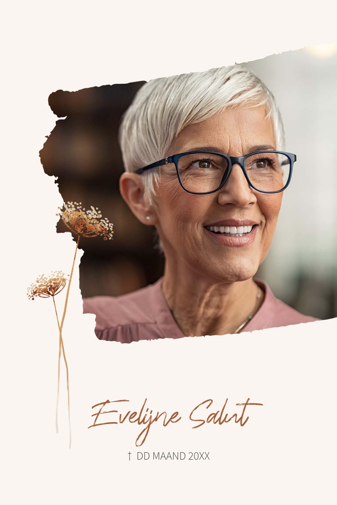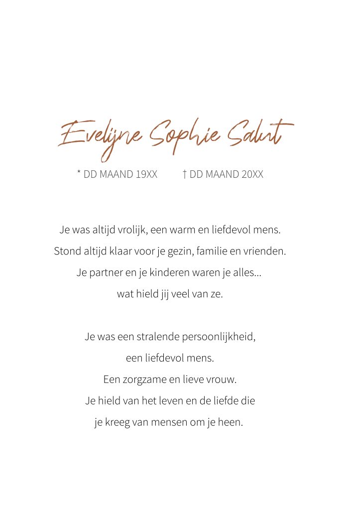 Op dit kaartje, ter nagedachtenis aan de overledene, is ruimte voor een foto, een mooi gedicht en een persoonlijke tekst om de dierbare te herinneren.