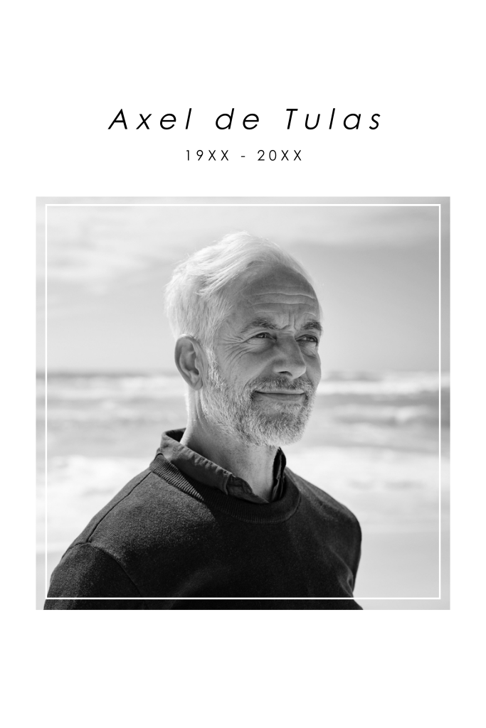 Cleane herinneringskaart met eigen foto in kader. De foto op de voorzijde en de sfeerfoto op de binnenzijde kun je in de editor eenvoudig vervangen voor een eigen foto.