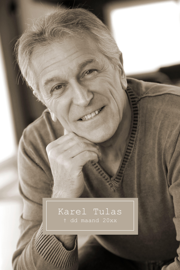Herinneringskaart met op de voorzijde een vullende portretfoto van de dierbare.