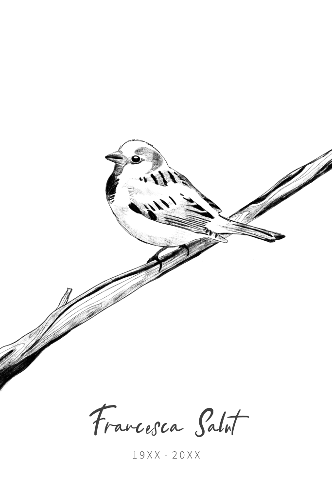 Clean herinneringskaartje met dieren illustraties, getekend door één van onze eigen designers. Op deze gedachteniskaart een vogel op een tak en op de binnenzijde een slapende vos.
