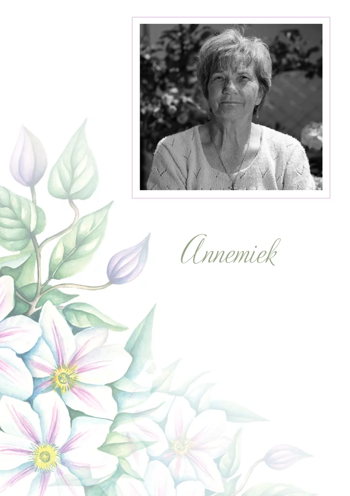 Klassiek ontwerp van rouwbrief met bloemen en portretfoto.