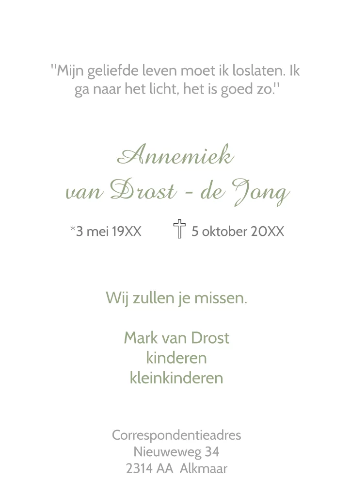 Klassieke rouwbrief