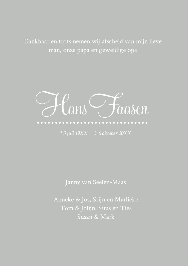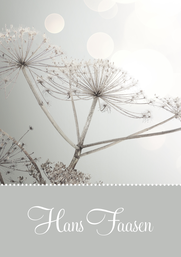 Stijlvolle rouwbrief met mooie foto van gedrogode bereklauw en frisse opmaak.