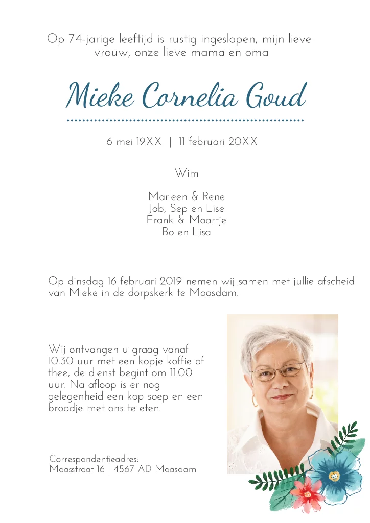 Deze gedachtenis- of bidprent kunt u helemaal personaliseren.