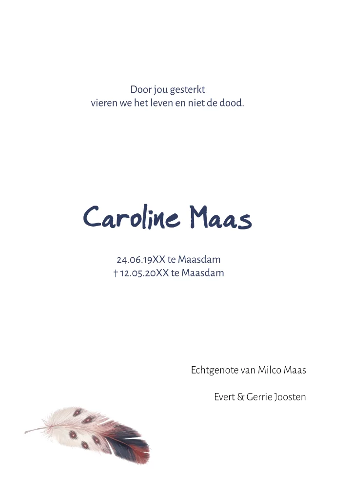 Uitnodiging uitvaart met veren