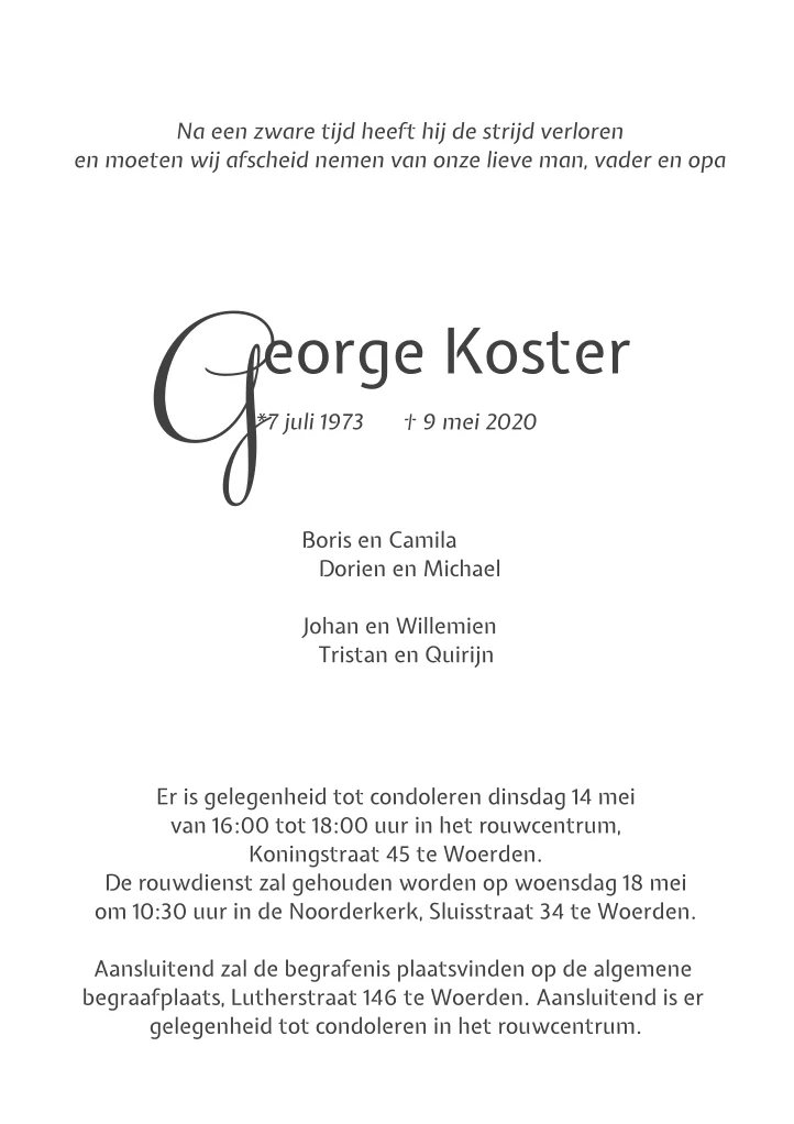 Tijdloze rouwbrief met een abstracte achtergrond.