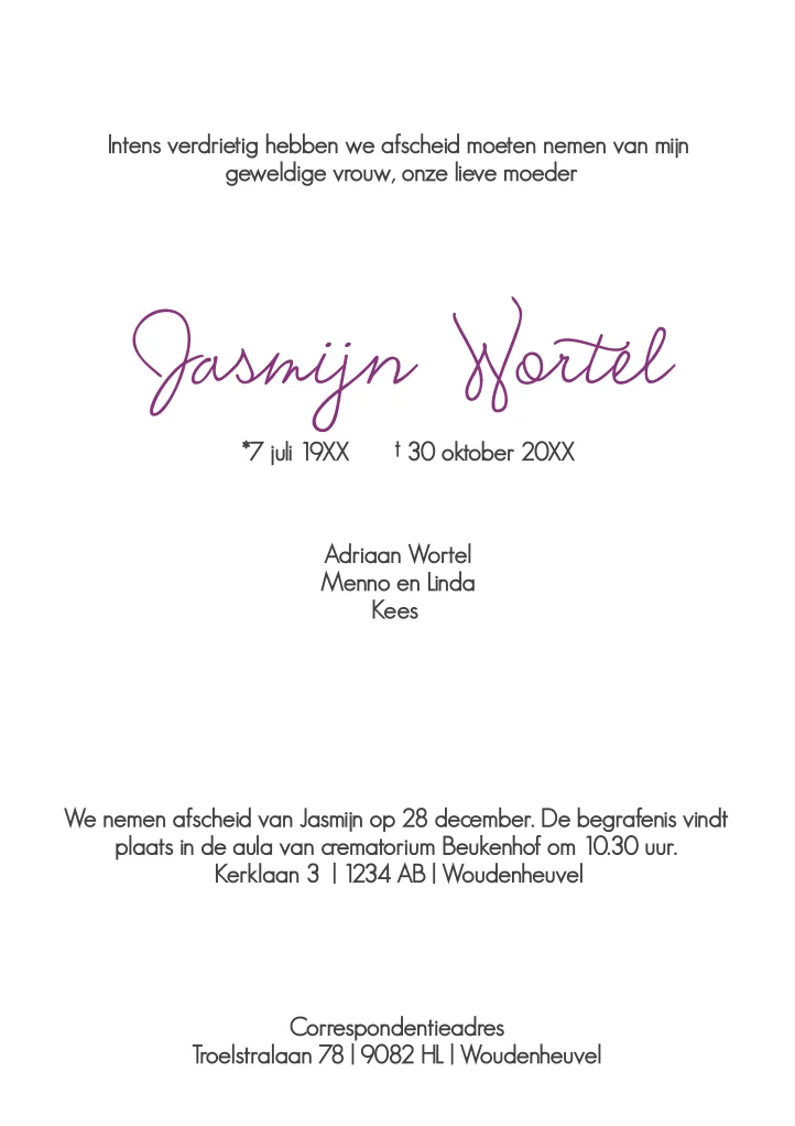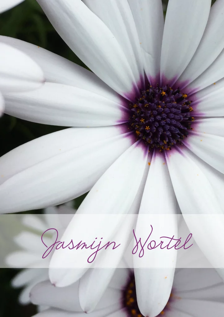 Mooie persoonlijke rouwbrief met foto van een bos margrieten.