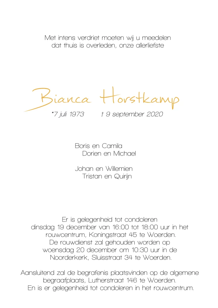Mooie moderne rouwbrief met close up foto van een prachtige lelie. Dit ontwerp is geheel aanpasbaar.