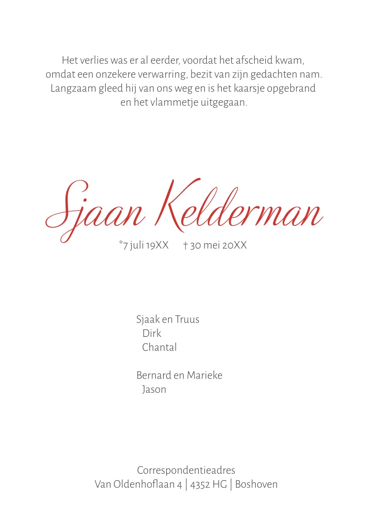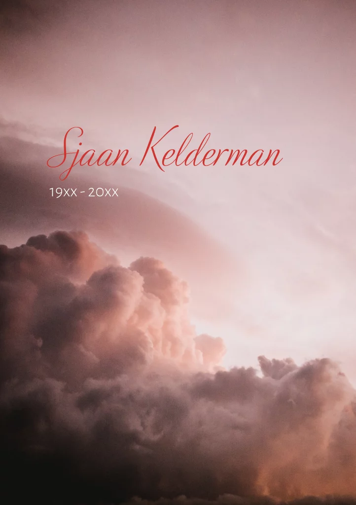 Warme, rustige rouwbrief met een foto van roze wolken.