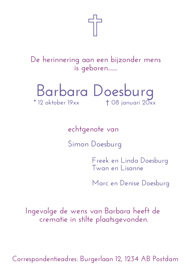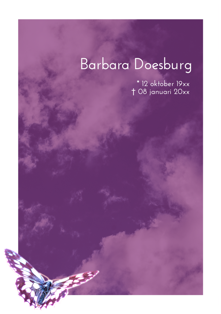 Rouwbrief met foto van wolken waarnaar een vlinder vliegt