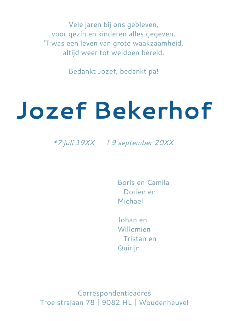 Simpel abstracte rouwbrief met blauw en grijs tinten