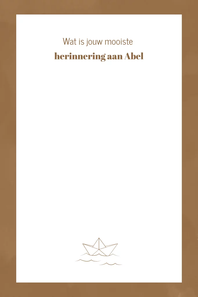 De herinnering blijft. Op een invulkaartje kun je mensen vragen een persoonlijke herinnering op te schrijven die ze hebben aan het overleden kindje. Hoe mooi is een handgeschreven aandenken. Zeer dierbaar voor de nabestaanden om te bewaren en te koesteren.