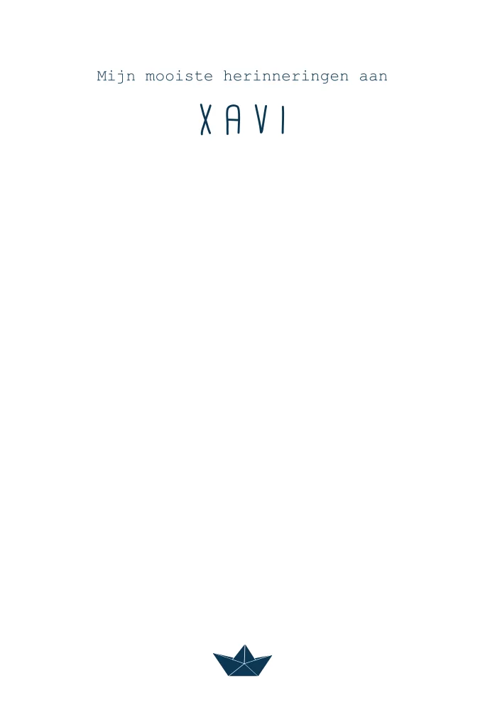 Invulkaart kindje voor herinnering met gevouwen bootje van papier.