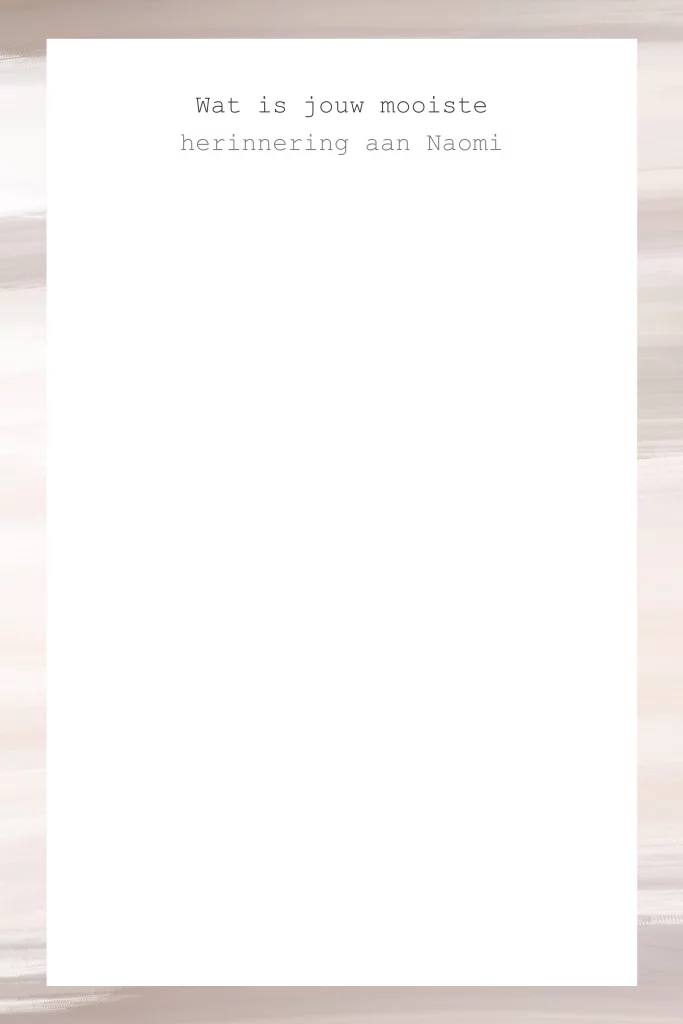 De herinnering blijft. Op een invulkaartje kun je mensen vragen een persoonlijke herinnering op te schrijven die ze hebben aan de overledene. Hoe mooi is een handgeschreven aandenken. Zeer dierbaar voor de nabestaanden om te bewaren en te koesteren.